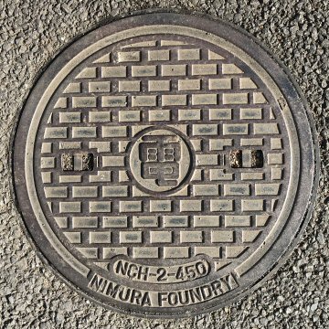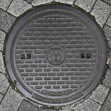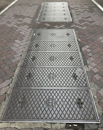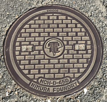 ニムラの石積み模様の鉄蓋である。いろいろなメーカーのものが採用されている。 |