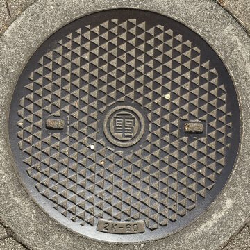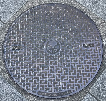 都紋章の中央部分にセメントが塗り込んである。蓋自体は使い回しと思われるが、管理主体が異なることから区別する処理をしている可能性がある。 |