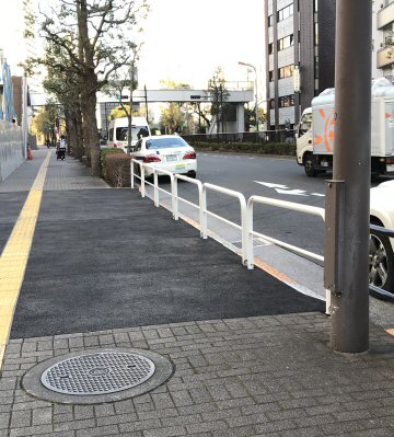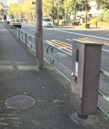 この都道の一定の区域では、街路灯の支柱の下に特定メーカーで統一した電機鉄蓋が見られた。 |