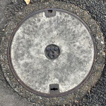 まれに表面がコンクリート製の蓋を目にする。化粧蓋と言った方が良いかも知れない。 |