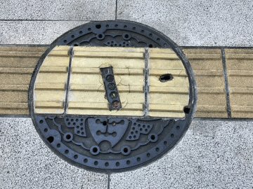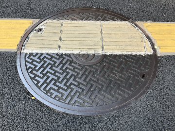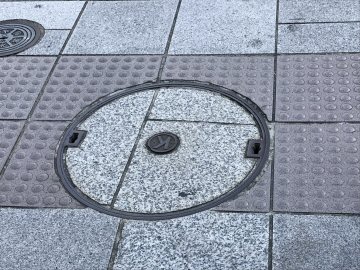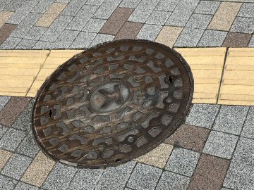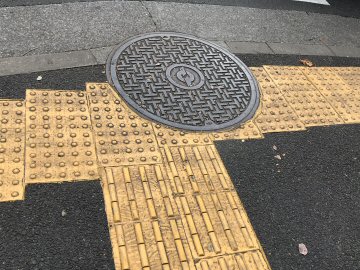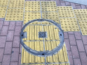 下水道鉄蓋と点字ブロック