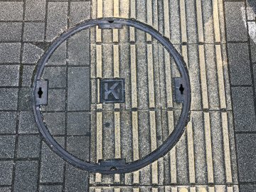 信号機がらみの「丸K」表示が警視庁を意味することはあまり知られていないが、点字ブロック設置の作業者はこれを知ってか、しっかり敬意を表しているようである。 |