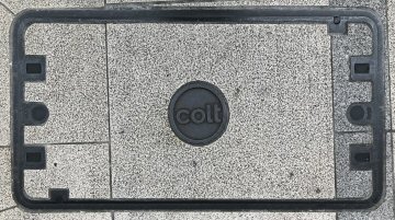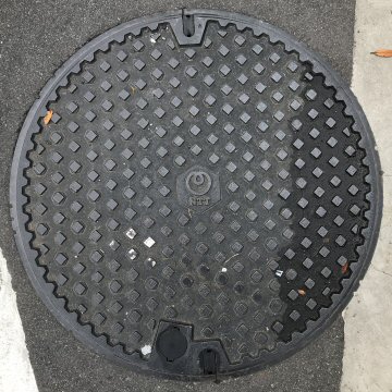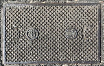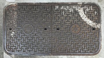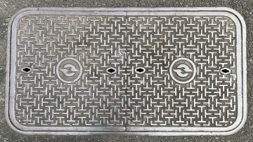 この手の模様が近年はやっていて、NTTはやっとこの模様の蓋に順次切り替えるようである。 |