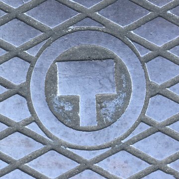 蓋の外径は76.5センチほどである。NTTとなってからもT字型の模様を惰性で継承している。 |