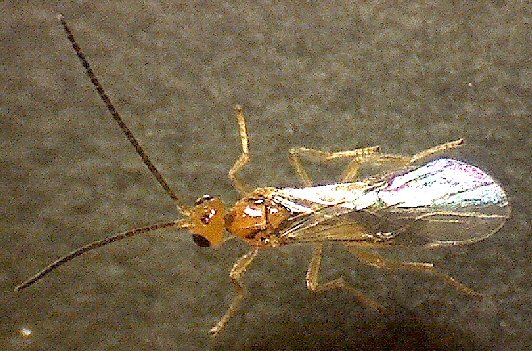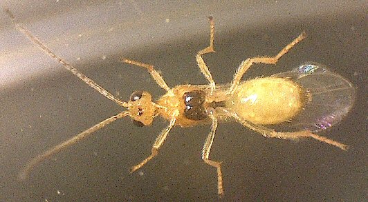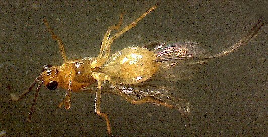 | アオキミタマバエの寄生バチ(♂ 腹面) |