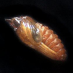 蛹が虫えい果から身を乗り出した状態で羽化し、蛹殻を残す。 |