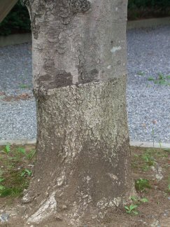 上の写真はいずれも特定の個体を増殖する必要性があって接ぎ木された樹木で、接ぎ木部分がはっきり確認できる。果樹や花木であれば接ぎ木で増殖される場合が多いから、同様の風景が確認されるかも知れない。