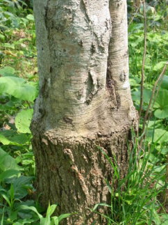 (右写真はヨーロッパシラカンバの樹幹最下部の樹皮) |