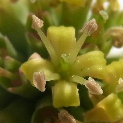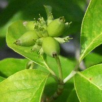 液果状の核果でヤマボウシのような集合果とはならない。(花は密に束生しているが、互いに離れ、果時にも合着しない。) |