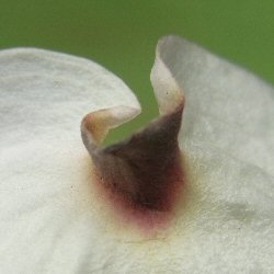 また、開花時期の早々に小さな総苞片を開いてしまうタイプの場合も、基本的には同様の経過をたどるものと思われる。つまり、総苞片の中心線部分の成長が遅いために全体がやや歪んだ形態になることが理解できる。 |