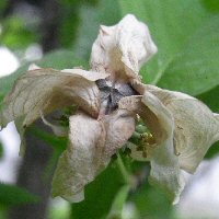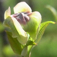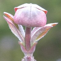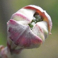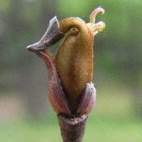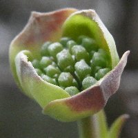 花芽の段階では、相対する2組の総苞片のうち、外側のものは尖った先端部が合着しており、内側のものはこれに上下方向でゆるく張り付いている。この形態は明らかに若い総苞片は芽鱗に代わる機能も併せ持っているということに他ならない。 |