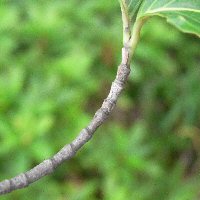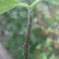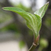 シュートを出し、対生の葉をつける。短枝では1対の葉のみ。 |