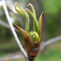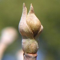花芽(混芽)は2対の芽鱗に包まれている。 |