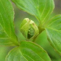 花芽の直下の1対の葉芽がそれぞれ対生の葉を出す。 |