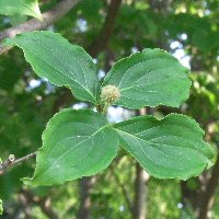 ヤマボウシの場合は、花芽では総苞片の外側にしっかりとした芽鱗があるから、総苞片は梱包の内側の薄い包み紙のような存在で、頭花をがっちりガードする役割を担っているわけではない。このため、細長い総苞片はゆるく頭花に巻き付いているだけで、芽鱗が開けばゆったりと普通の葉のように全体を均一に成長させて大きくなっていることがわかる。 |
