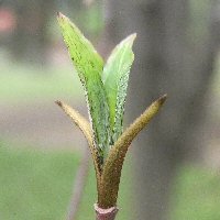 展開し始めた葉の様子で、1対の芽鱗は後に脱落する。 |