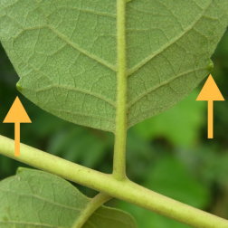 小葉基部の鋸歯先端部の裏面に蜜腺が見られる。(9月中旬) |