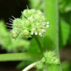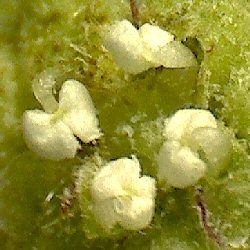 葉腋に雄花と雌花がまじった集散花序をつける。目が慣れれば道端でよく見つかる。 |