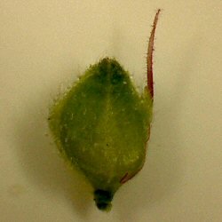 果実は小さく、その形状はわかりにくいが、じっくり観察すれば理解できる。この外観は種子と言いたくなるが、そう果とされるからあくまで “果実” である。また、くちばし状の外果皮から放り出されることから、このそう果の表面は内果皮となる。 |