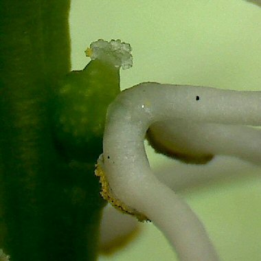 葯が花糸の下部についているとは奇妙なことである。この花糸について、「日本の野生植物」では「葯隔」と呼んでいる。この花糸(葯隔)は花粉媒介昆虫の誘引・着陸に役立っているのであろうか。 |