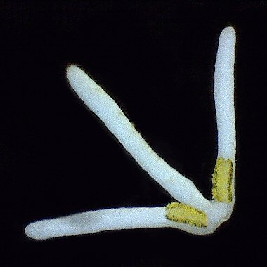 3個の雄しべを子房から剥がして、下側から見た様子である。 |