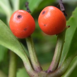 センリョウは間違いなく常緑低木であるが、センリョウ科の国内自生種を調べてみると、以下の2属4種のみが知られている。 |