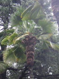 Trachycarpus fortunei(Chusan Palm, Windmill Palm or Chinese Windmill Palm)は中国中部湖北省、ミャンマー北部原産。古くから栽培されていて、正確な自然分布はわからない。T.fortunei ‘Wagnerianus’は以前はしばしば別の独立した種として扱っていたものであるが、中国や日本で栽培種から選抜された葉の小さい変異個体である。【英語版Wikipedia】 |