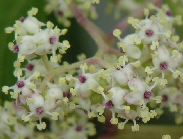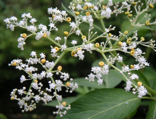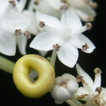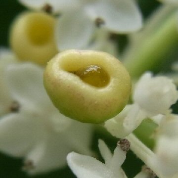 ニワトコは別途蜜腺体をもたないが、結実はソクズに比べるとはるかに良好である。 |