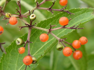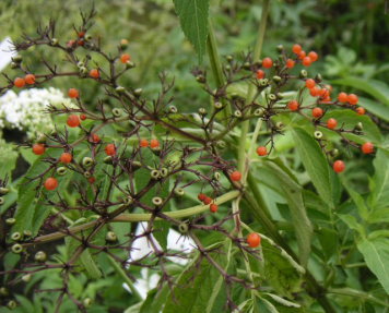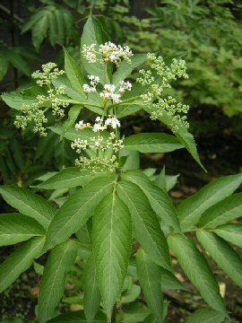 ガマズミ科(旧 スイカズラ科→レンプクソウ科)ニワトコ属の多年草 。