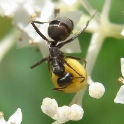 ソクズの蜜腺体は魅力的な存在であることから、さまざまな虫が訪れていて、以下はその例である。誰が最も送受粉に貢献しているのかはよくわからない。 |