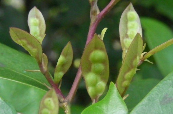写真の状態の後に、肉質の葉組織で虫室が閉鎖される。 |