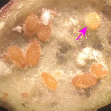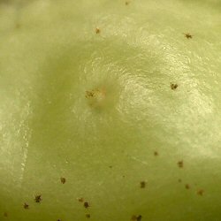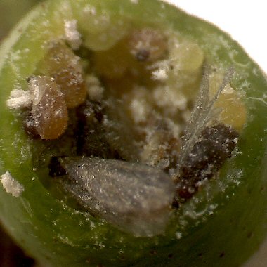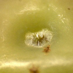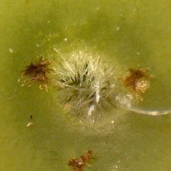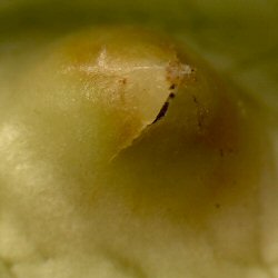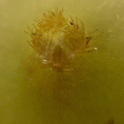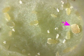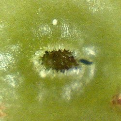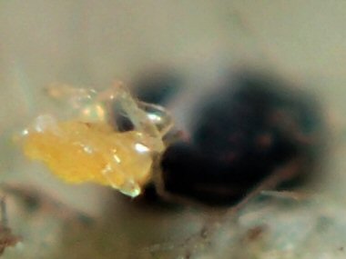 ★肝心の卵の存在であるが、極めて微小なもののようで、芽の基部を観察するも、残念ながら卵らしきものは確認できなかった。 肉眼で確認するのは難しそうである。 |