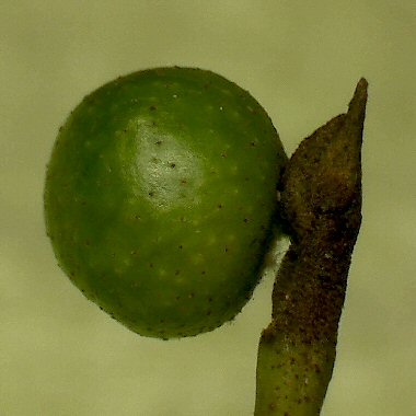 その後、虫えいは急速に肥大して、径11ミリくらいになる。虫えいは緑色で壁は薄くて柔らかい |
