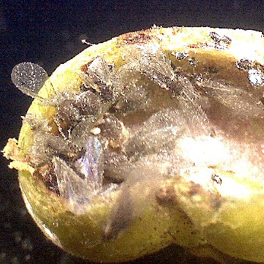 10月下旬に虫えいは裂開して、中から100〜120匹の有翅産性虫が出現 |