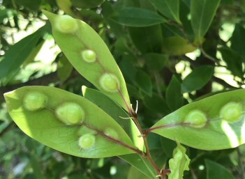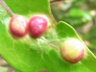 イスノキの葉のイスノキハタマフシ(葉表側)