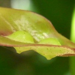 イスノキの新葉に形成された初期の虫えい 2(葉表)