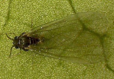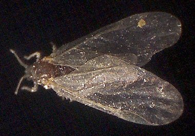 成虫はやはりヤノイスアブラムシやイスノタマフシアブラムシと異なって、翅のたたみ方が異なっている。 |