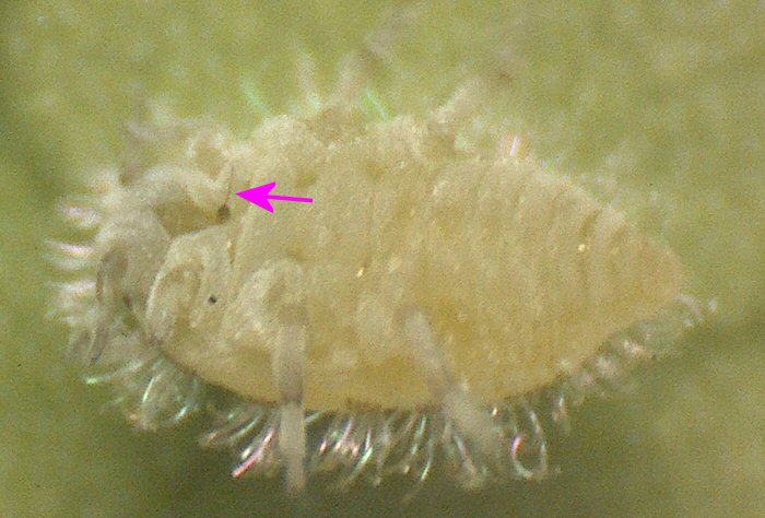 イスノタマフシアブラムシの無翅型の幼虫? 2(腹側) |