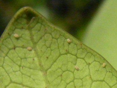 有翅産性虫がイスノキの葉裏に産下した幼虫? |