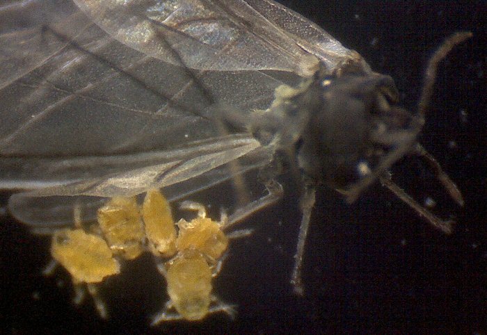 ヤノイスアブラムシの出産シーン