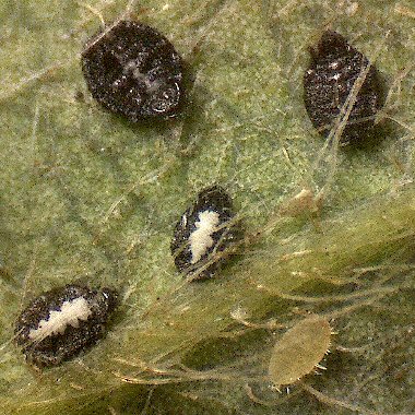 イスノキの葉裏のヤノイスアブラムシの有翅産性虫 5(腹側)
